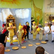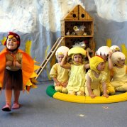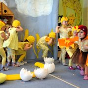 Děti ze Želviček zahrály pohádku "O Kvočně", která pečlivě chrání svá kuřátka.