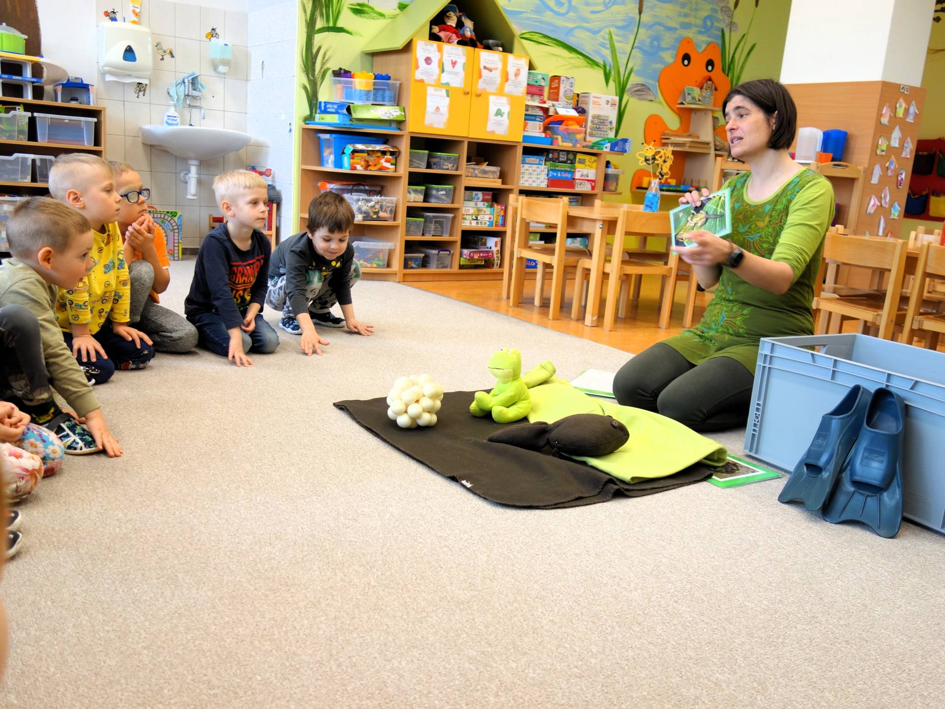 Děti z Myšiček si užily jedinečný vzdělávací program, ve kterém se společně vydaly za dobrodružstvím do světa žab, čolků a mloků. Nechyběly smyslové hry i setkání se živými žábami.
