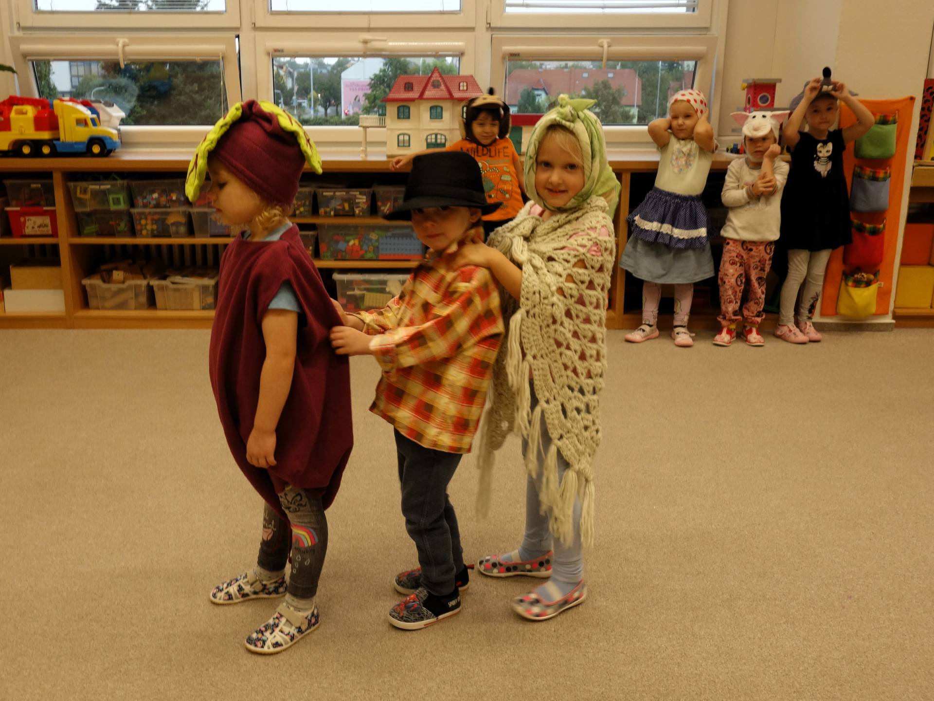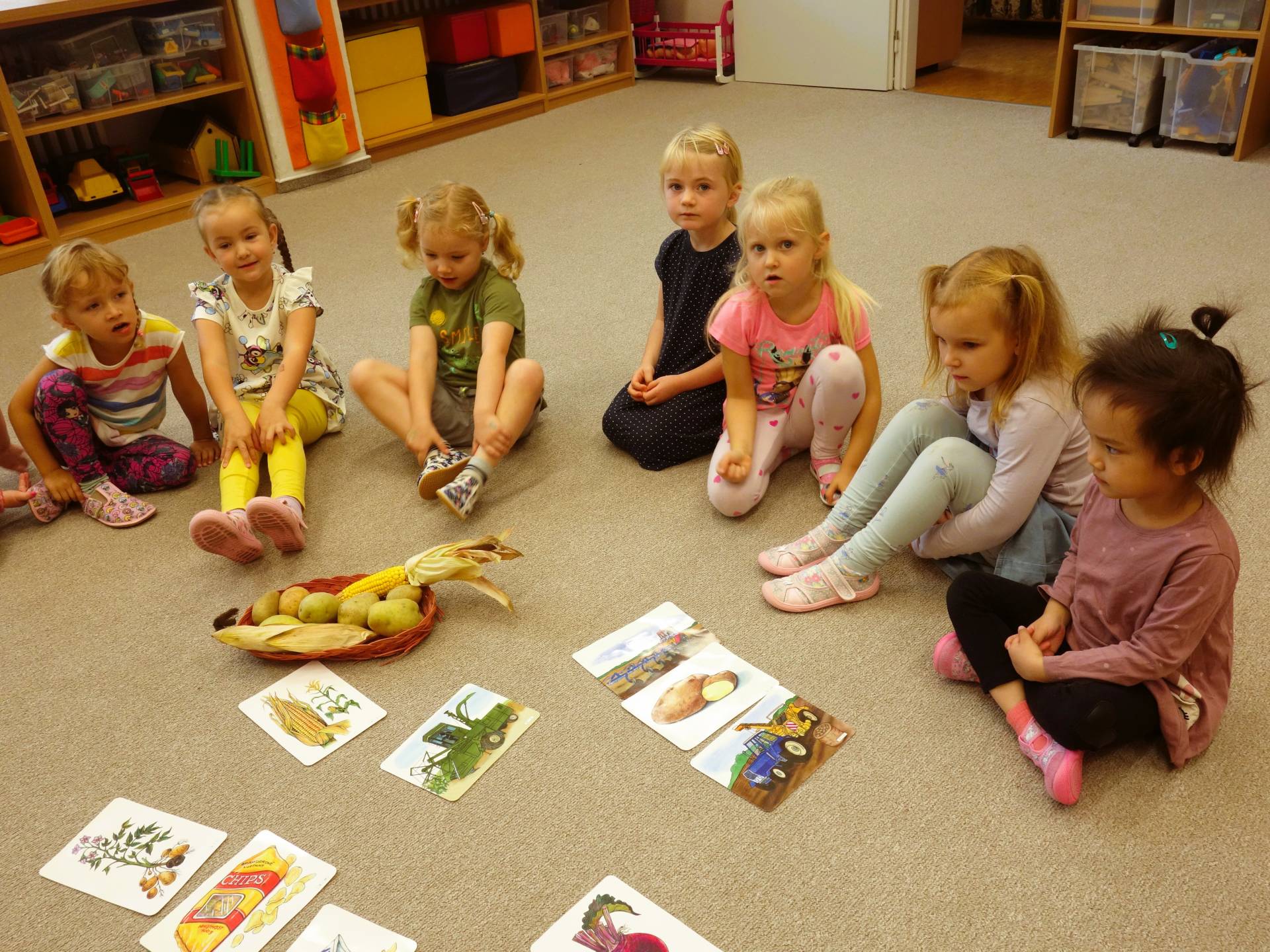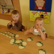 Děti z myšiček se během týdne seznámily s mnoha druhy zeleniny. Děti si také vyzkoušely zahrát pohádku "O veliké řepě".